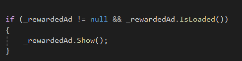 if (_rewardedAd != null && _rewardedAd.IsLoaded())