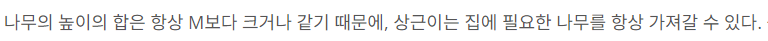 이 부분인데, 만약 같은 경우가 없을 경우에 나오면 계산된 값이 현재 필요한 나무의 값보다 작으면
