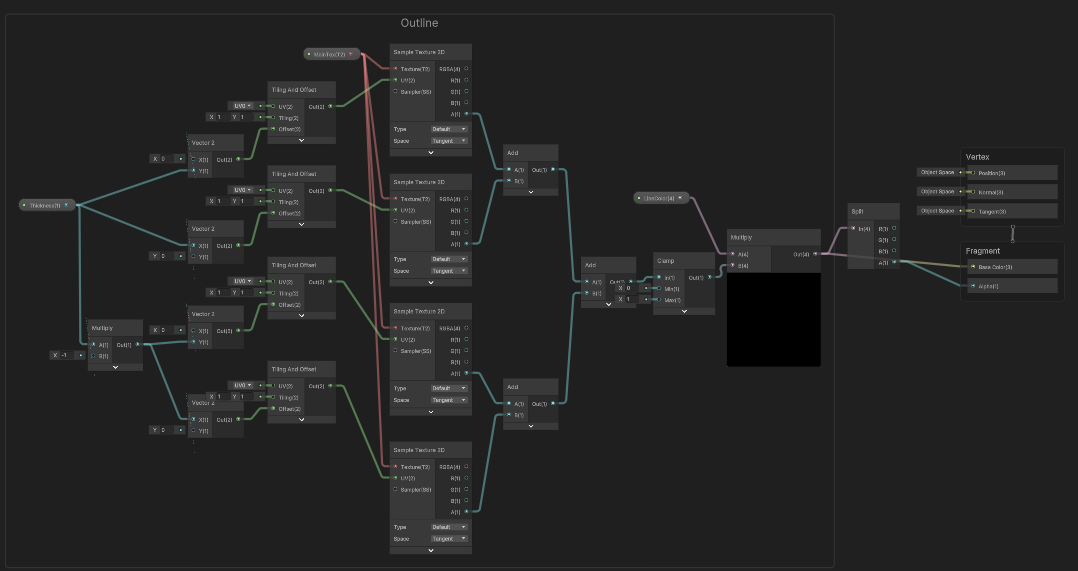 합친 값과 Outline Color를 곱해 Outline을 만들었다.